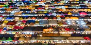 The famous Train Night Market in Bangkok, Thailand taken from above.